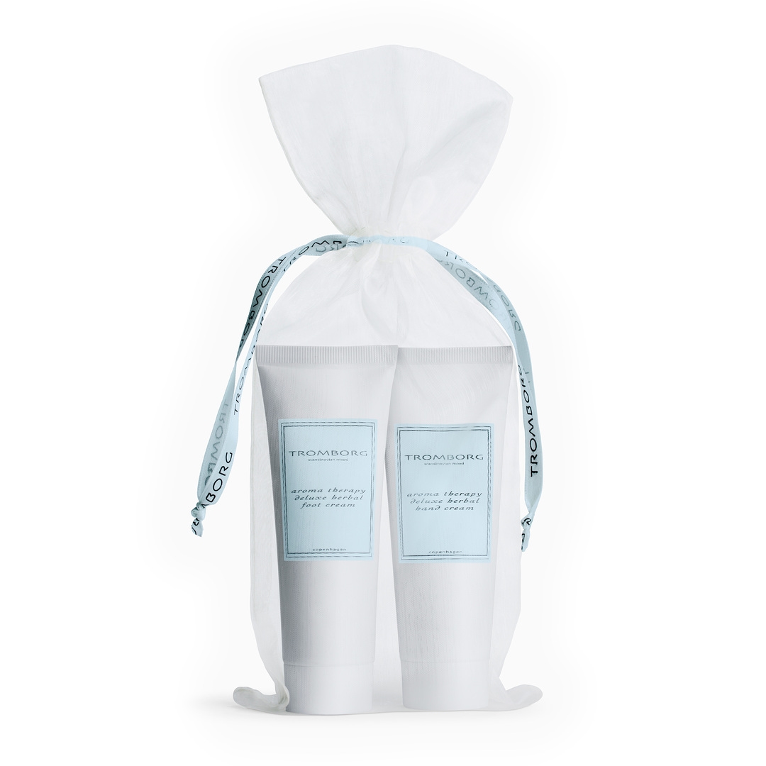 340,00 DKK Nyhed Tromborg Herbal Hand & Foot Cream Gavesæt Forside » Mærker » T » Tromborg Pris ved 1 , 180,00DKK Antal Køb På lager - Lev. 1-2 dage Beskrivelse Specifikationer Anmeldelser Tromborg Det perfekte par til tørre hænder og fødder. Sættet indeholder to nærende og fugtgivende cremer fyldt med økologiske planteeksktrakter særlig sammensat til at hele, reperere og lindre huden på dine hænder og fødder. Totalværdi: 340,- Sættet er den perfekte introduktion til Tromborgs univers af aromaterapi og aktive ingredienser. En skøn gave til en du holder af. Læs mere Indhold Aroma Therapy Deluxe Herbal Hand Cream (75 ml) er en fantastisk nærende håndcreme fyldt med bl.a. shea butter og aloe vera, der reparerer, lindrer og er magiske fugtgivere. Plejer og styrker huden på hænderne, når de er udsat for kulde, vind og sol. Aroma Therapy Deluxe Herbal Foot Cream (75 ml) giver dig de skønneste, fløjlsbløde fødder og indeholder mere end 15 økologiske planteolier og ekstrakter, der heler, plejer og regenererer huden. Egenskaber Heler og lindrer tør hud Absorberes hurtigt uden at fedte Fantastisk til natbordet eller håndtasken Velduftende aromaterapi til sanserne Anvendelse Anvendes efter behov. De to cremer er også begge fantastiske at bruge som helende natkur. Totalværdi: 359,- Skjul tekst 0 anmeldelser Produktet er endnu ikke anmeldt. Skriv en anmeldelse. Varenummer: 23706 Måske er du også interesseret i følgende produkter Nyhed Tromborg Deluxe Hand Cream & Hand Soap Gavesæt 280,00DKK Nyhed Tromborg Bath & Shower Ginger Gavesæt 210,00DKK Nyhed Tromborg Deluxe Hand Soap Ginger Gavesæt 130,00DKK Nyhed Tromborg Deluxe Hand Soap Lavender Gavesæt 130,00DKK Kunder købte også Nyhed GOSH Skin Care Micellar Cleansing Wipes 25 stk 50,00DKK Hugo Boss Man Deospray 150 ml 245,00DKK Chloe Naturelle Edp 5 ml 99,00DKK Day ét Party Scrunchie - Silver 129,00DKK